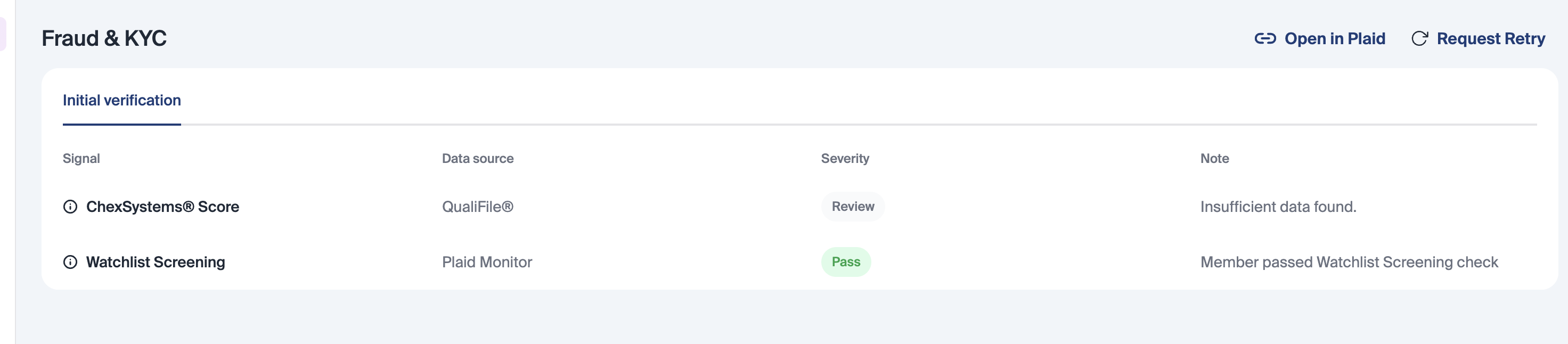 QualiFile Decline Reason Display: QualiFile decline reasons are now surfaced directly on the application dashboard in the note column in the Fraud & KYC table, giving staff clearer visibility into declined applications without needing to dig into additional systems.