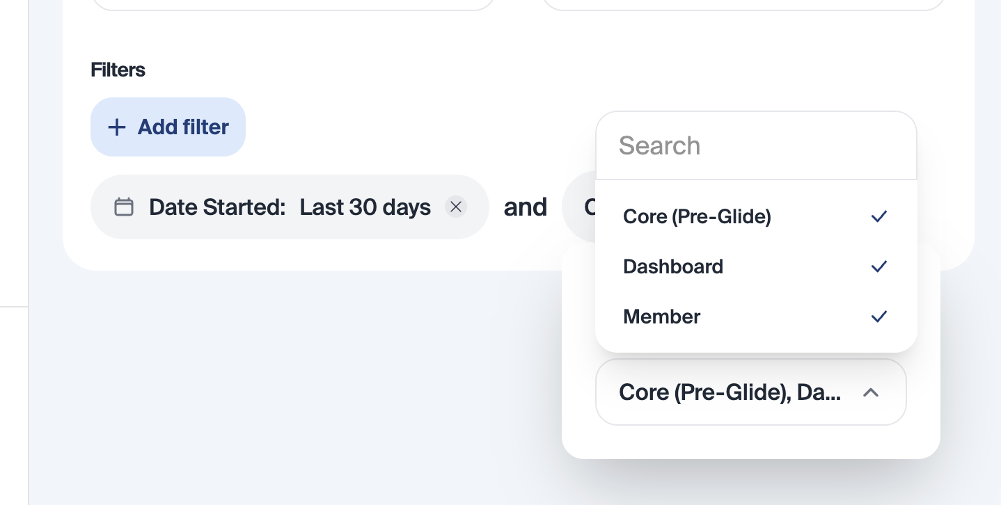 "Pre-Glide" Channel Filter in Reporting: Pre-Glide has been added as a channel filter option within reporting, allowing for more granular filtering and analysis across channel-specific reports.