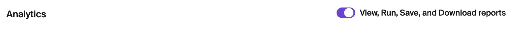Permissions - Analytics UI Update: Text for the analytics permission toggle has been updated for clarity. The toggle now listed “View, Run, Save, and Download reports” to add clarity on this permission. Learn more here.
